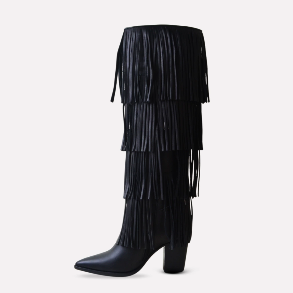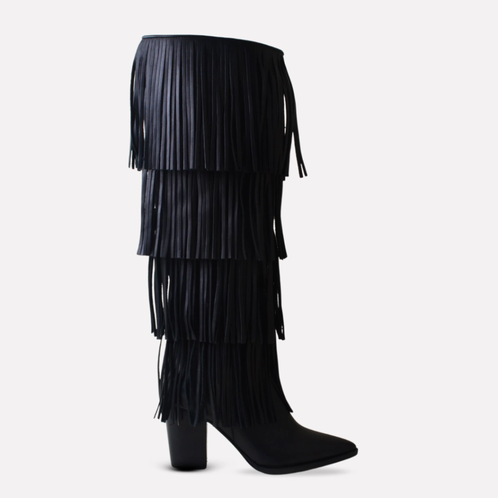 Material externo cuero vacuno con flecos al tono.